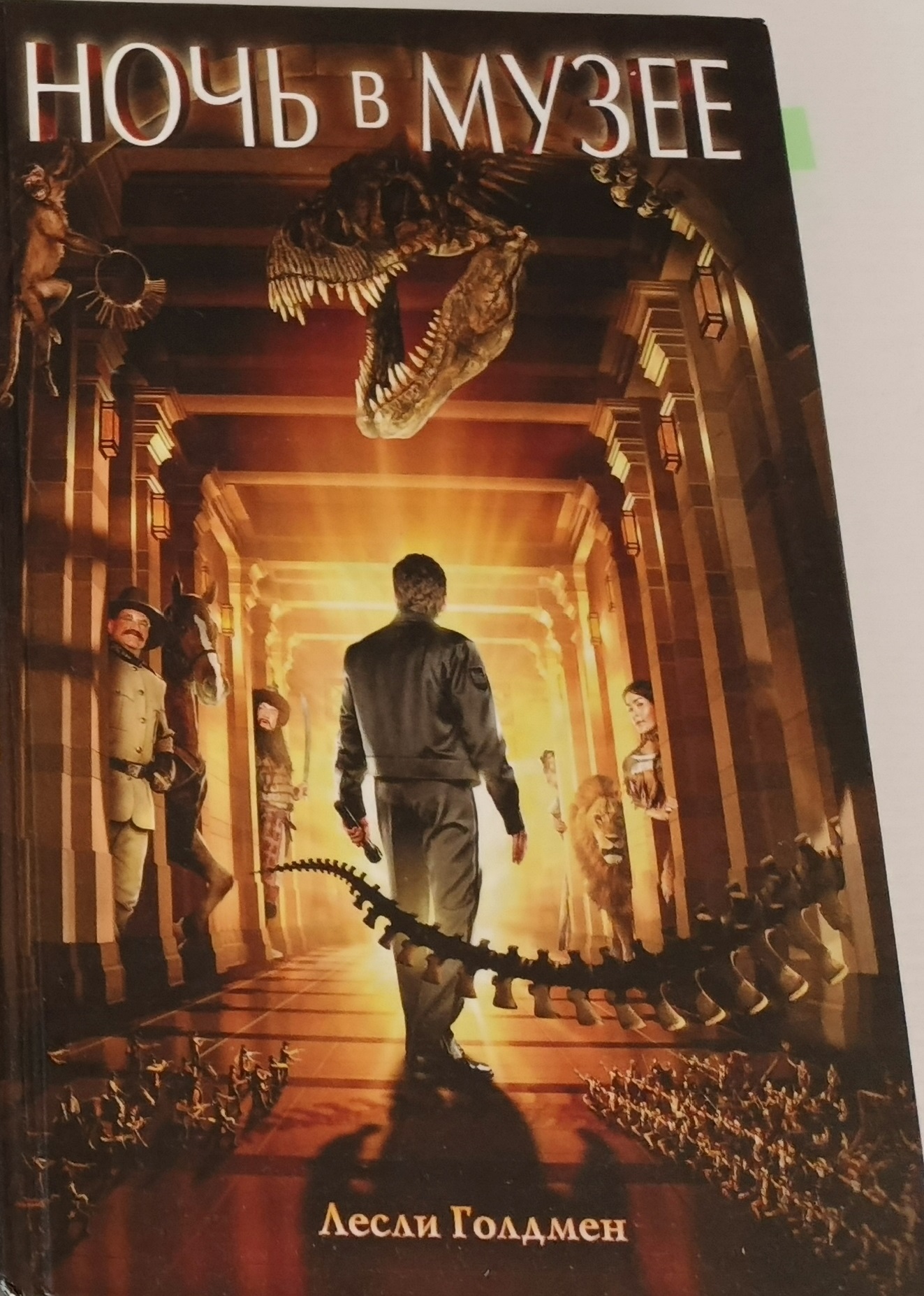 The events of the plot are similar to the film from this point on. Rebecca is portrayed a bit more seriously, and the AMNH is not open when Larry arrives. A blue beetle is the first thing Larry sees come alive, but said beetle escapes the museum and turns to dust on the first night. Moments that appear in deleted scenes and bonus features are seen, such as Larry meeting Spitzer the Whale in the Ocean Life exhibit, going to Rebecca's brownstone, and Lewis and Clark boarding the bus. At the book's halfway mark, there are film stills on glossy pages that are accompanied by quotes from the book.