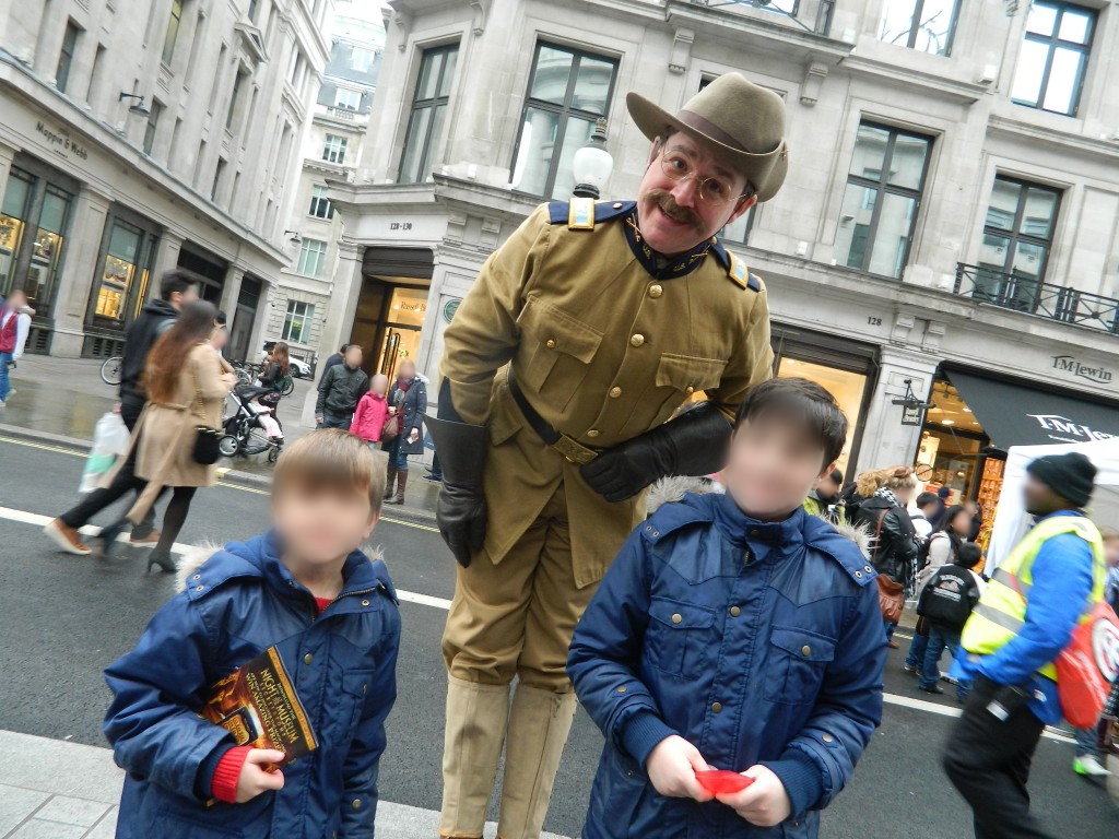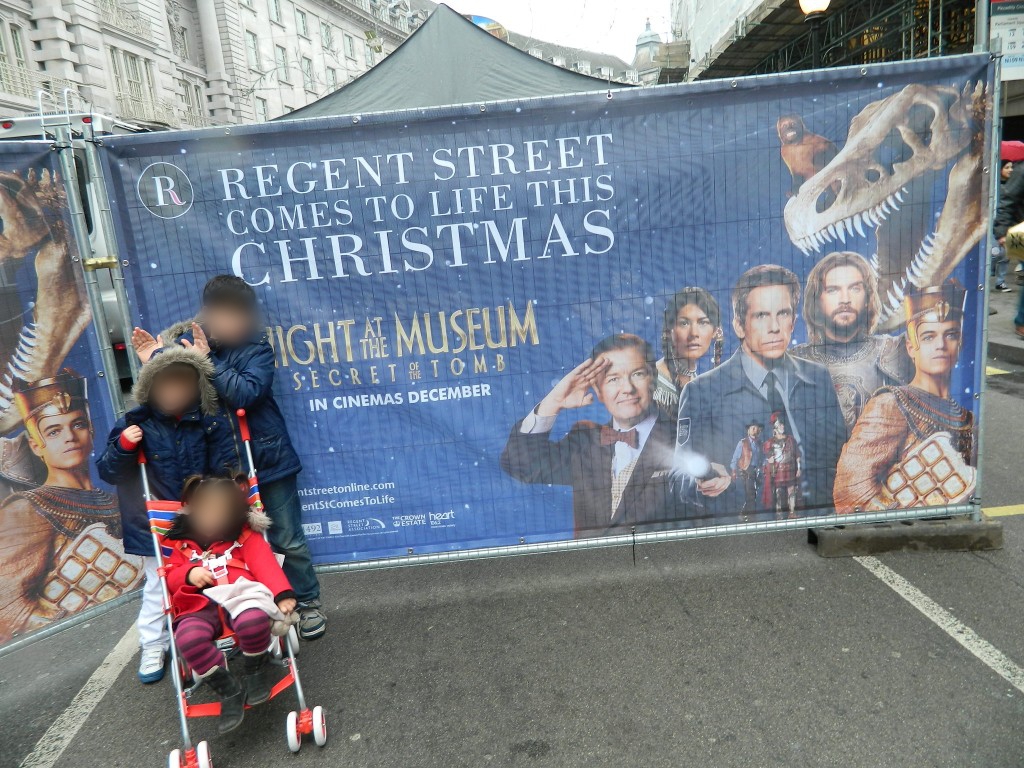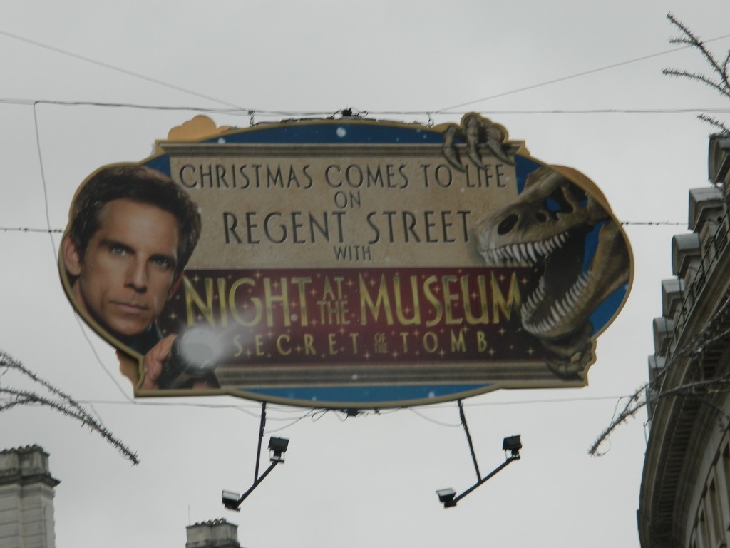 Regent Street is a road in London, one of the first purpose-built shopping streets in the city. It's been the filming location of many a scene, and it's also a place known for film promos. With the premiere of NatM 3, the street was lit up with string lights and characters from the films walked around; available to take pictures with. The event included performances from Union J, Jersey Boys, Jack Pack, Jessie Ware, and Take That. The stage had the film's logo as the backdrop.[9]